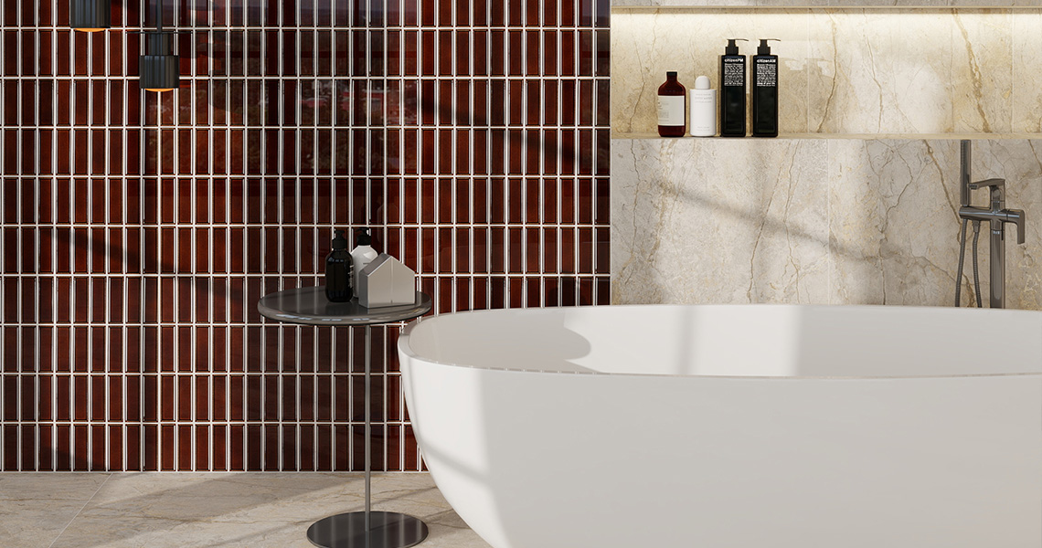 QUINN features a gloss and satin finish in a mix of thirteen light, dark and metallic colour choices. Perfect as a backsplash or a decorative wall across residential, hotel, hospitality and corporate projects.